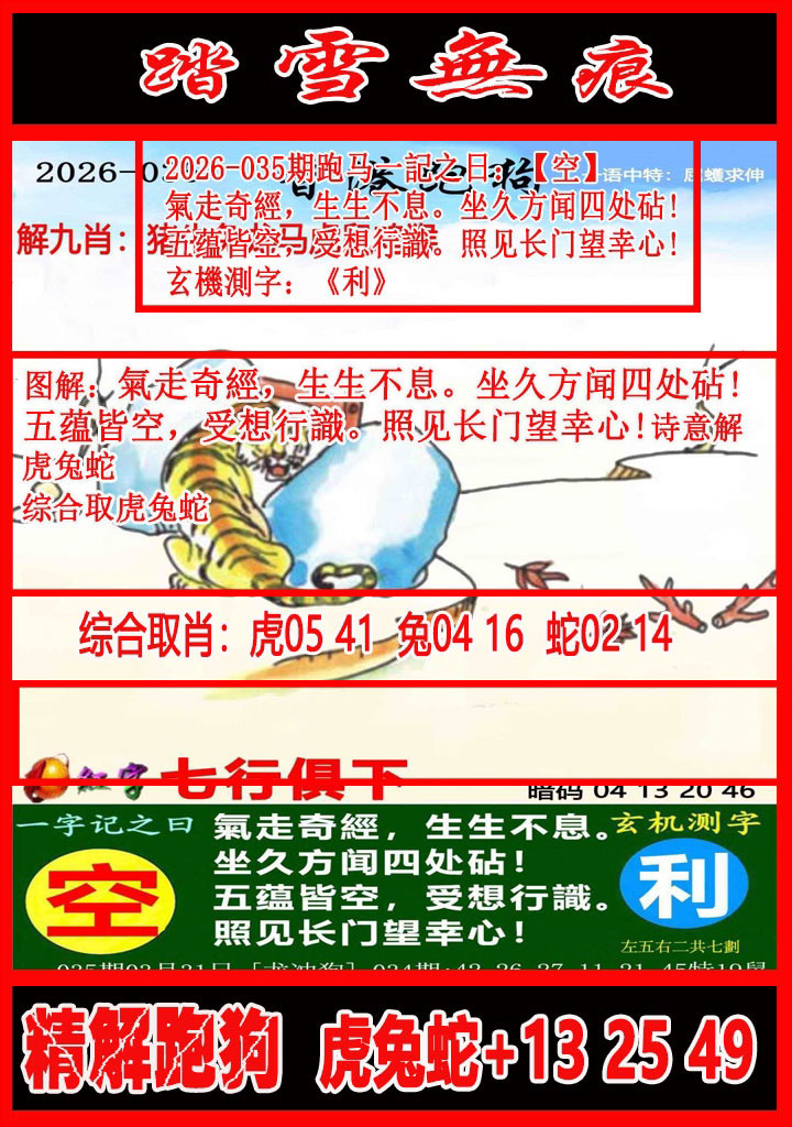 035期:【富贵人生】━━━【解析跑狗玄机】━━━个人心水分析!
