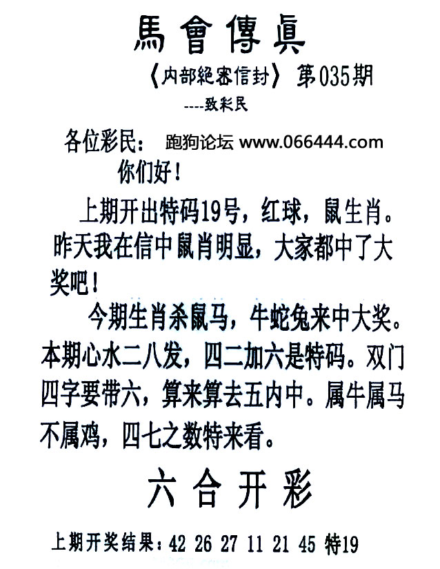 035期:香港跑狗论坛原創-【精准铁杀10码】→资料已公開 跑狗出版社