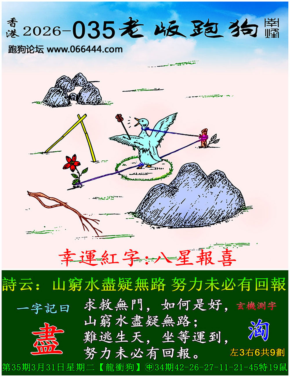 035期:跑狗玄機/密圖詩/粤彩三语/特碼歇后语/正另版梅花诗 跑狗出版社